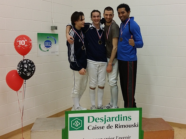 Bravo à Nicolas Demers-Gagnon et Alexandre Lemay, qui se sont mérité la médaille d'or lors de l'épreuve d'épée masculine.  En cours de route, ils ont éliminé successivement les équipes de Richelieu-Yamaska, Montréal et Laval.  Donc, une très belle victoire pour la région de Québec!